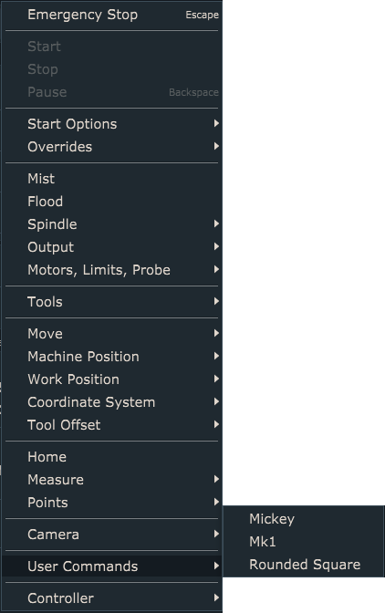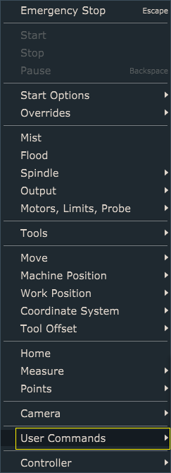 User commands are accessible trough Machine/User Commands menu: