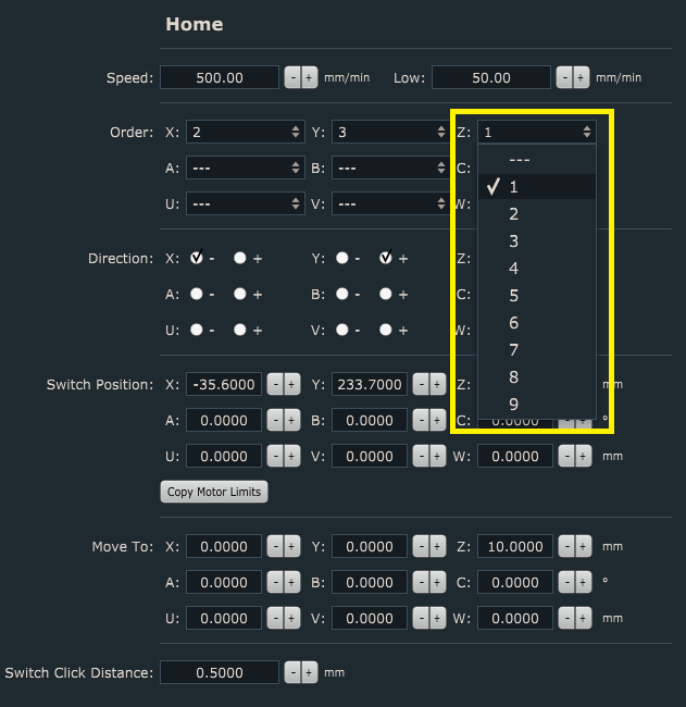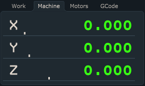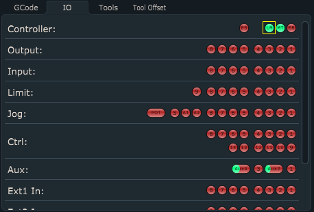 State tabs are displayed on main user interface and can include any parameter used by software whether its tool offset value, number of g-code line or absolute position of machine. By default, software will display only state tabs “GCode” and “IO”.