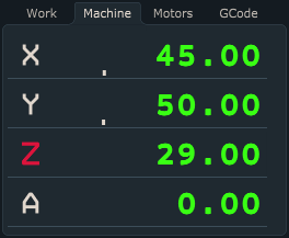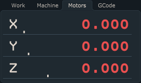 Example of Work Position parameter values displayed under label Work Position, note that position values will be displayed at three decimals :