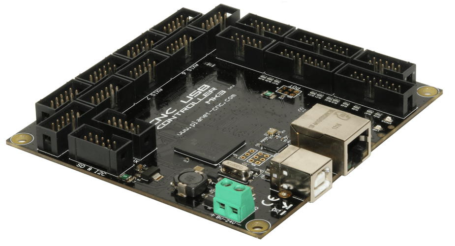 You can also connect limit switches, jog buttons and other inputs/outputs to controller.