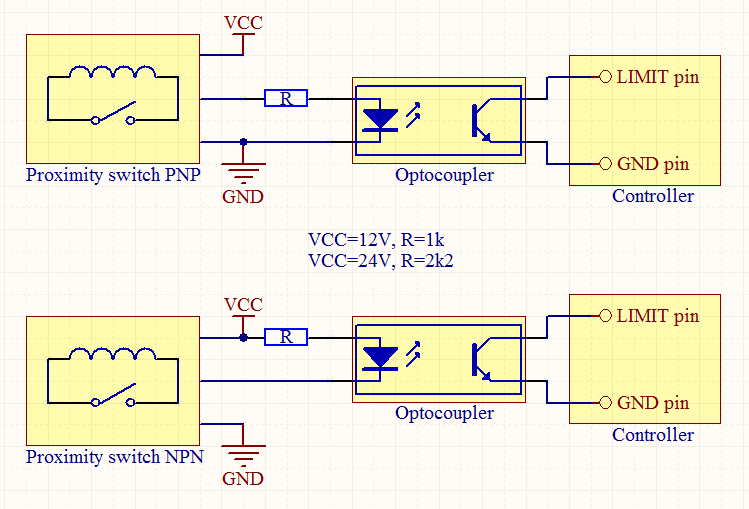 HOW TO CONNECT PROXIMITY SWITCH AS LIMIT SWITCH USING OPTOCOUPLER?