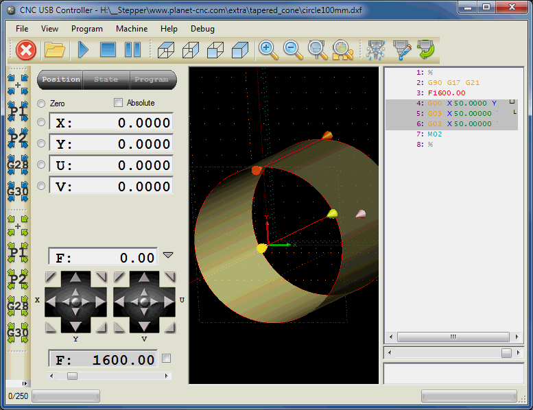 It is important to know diameter of circle. I’ll use 100mm circle which I created with CAD software. You can also get 100mm circle from sample files in your PlanetCNC software installation folder.