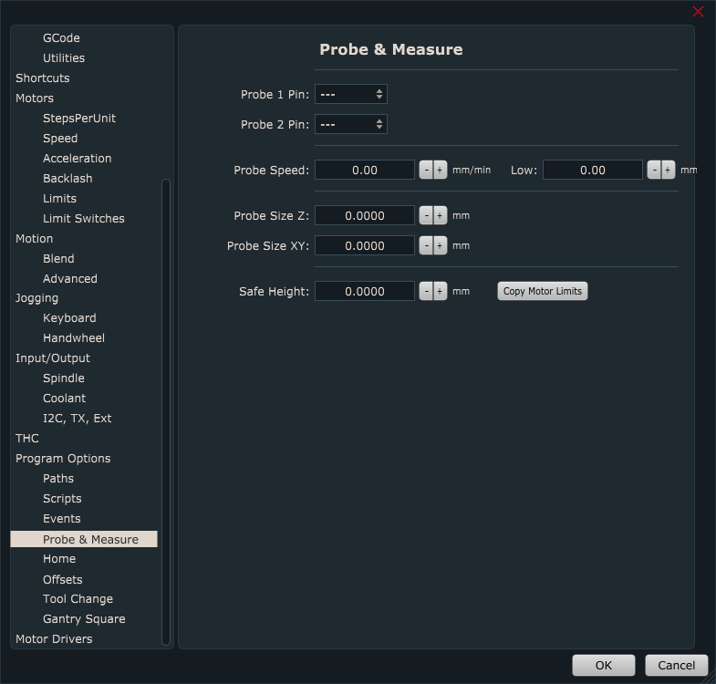First measurement move will be performed at Speed value. After movable sensor is activated, machine retracts for switch click distance and starts with the second measurement move, but this time at Low speed value. Make sure that Speed value is not set too high to the point where movable tool sensor, tool or machine could get damaged. Low value should be significantly lower that Speed value.