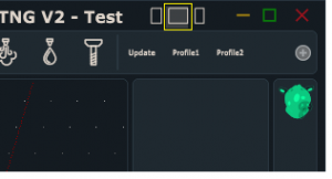To show/hide output panel in PlanetCNC TNG main window, click the middle square symbol in the upper right corner: