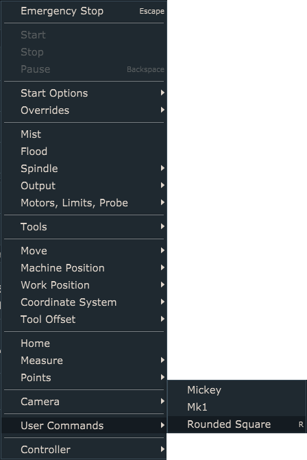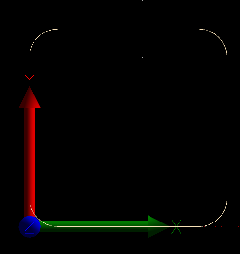 For this test you will use “Round Square” user command. This feature generates toolpath program for square with round corners. Machine will perform round corners using combined axis motion, which is perfect for our test.