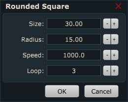 Displayed dialog offers you to insert values for Size, Radius, Speed and Loop: