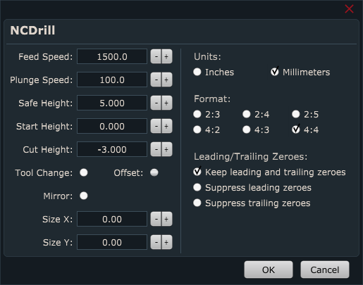 For this test, your machine should perform NC drill program file where machine drills lots of holes. Perform this test at max speed and acceleration values obtained with single axis speed and acceleration test.