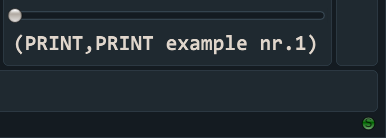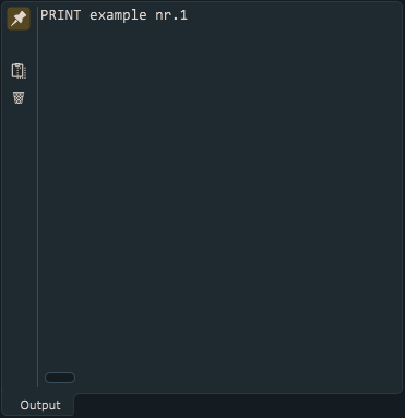 This will display “PRINT example nr.1” in Output window/panel: